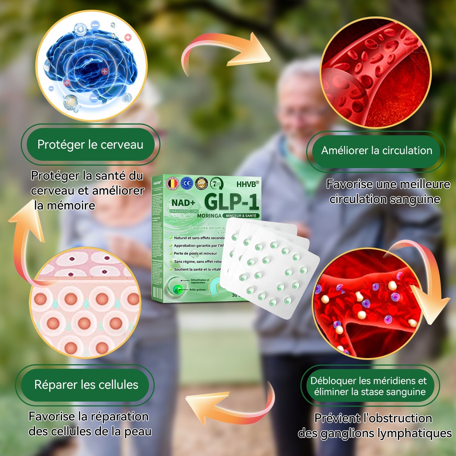 Le secret réside dans la puissante combinaison de GLP-1 et NAD+. Alors que le GLP-1 aide à réguler l'appétit et la glycémie, le NAD+ (nicotinamide adénine dinucléotide) joue un rôle clé dans l'énergie cellulaire, le métabolisme et la réparation. Ensemble, ils agissent en harmonie pour soutenir la santé métabolique à long terme — pas seulement la perte de poids.