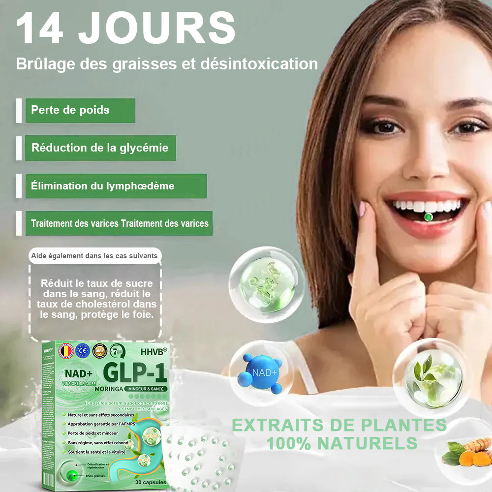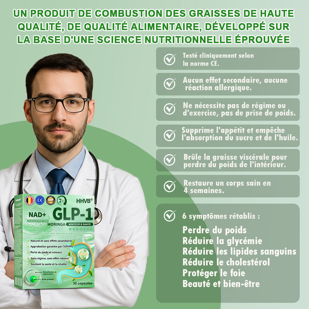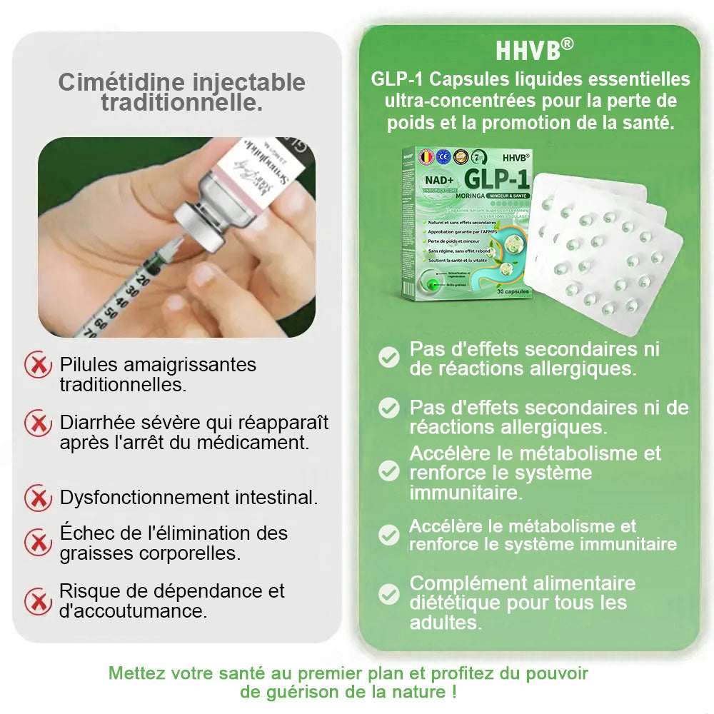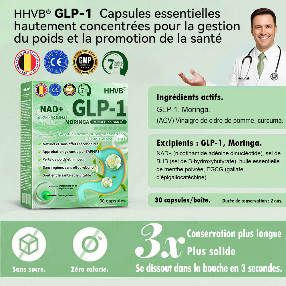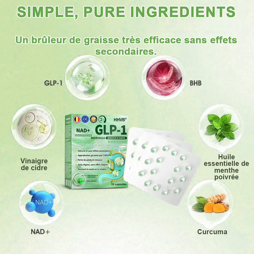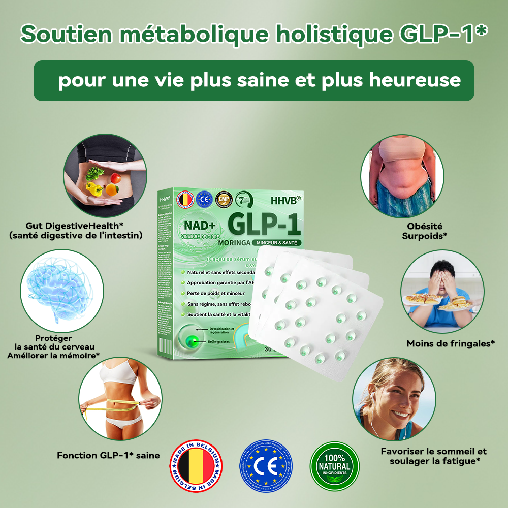HHVB® GLP-1 & NAD⁺ Perles Liquides d’Essence Ultra-Concentrée est une solution de gestion du poids de nouvelle génération, développée grâce à des années de recherche et à une compréhension approfondie du fonctionnement du corps dans la régulation des graisses, de l’appétit et de la santé métabolique. Cette formule avancée combine les puissants bienfaits du soutien végétal du GLP-1 avec le NAD⁺ pour aider à réduire l’appétit, rééquilibrer le métabolisme et soutenir un taux de sucre sanguin sain — tout en favorisant une perte de graisse naturelle et durable. Conçue pour être à la fois douce et efficace, elle offre une approche sans stimulants pour un bien-être à long terme, sans avoir recours à des régimes extrêmes ni à un exercice physique intense.